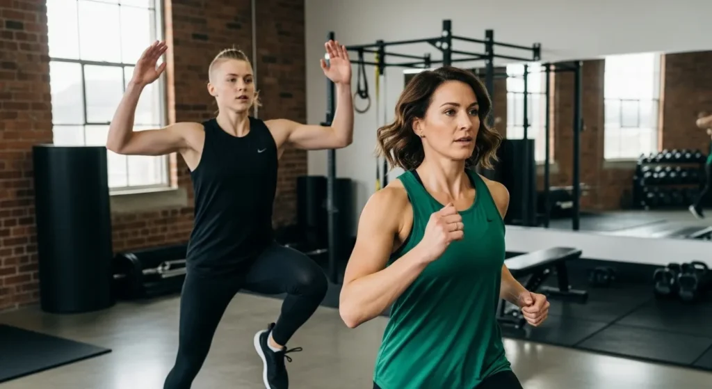 Ajoutez 10 fentes alternées par jambe. Votre genou avant forme un angle droit. Votre genou arrière frôle le sol. Ce travail unilatéral corrige les déséquilibres musculaires fréquents chez les athlètes CrossFit. Option avancée : intégrez un Swiss Ball (19,99 euros chez Carrefour) pour 20 secondes de montées de genoux sur surface instable. Votre core se contracte violemment pour maintenir l’équilibre. Cette instabilité contrôlée prépare aux mouvements gymnastiques du WOD. Terminez par un AMRAP de 12 minutes adapté à votre niveau, inspiré des meilleurs exercices CrossFit pour débutants.