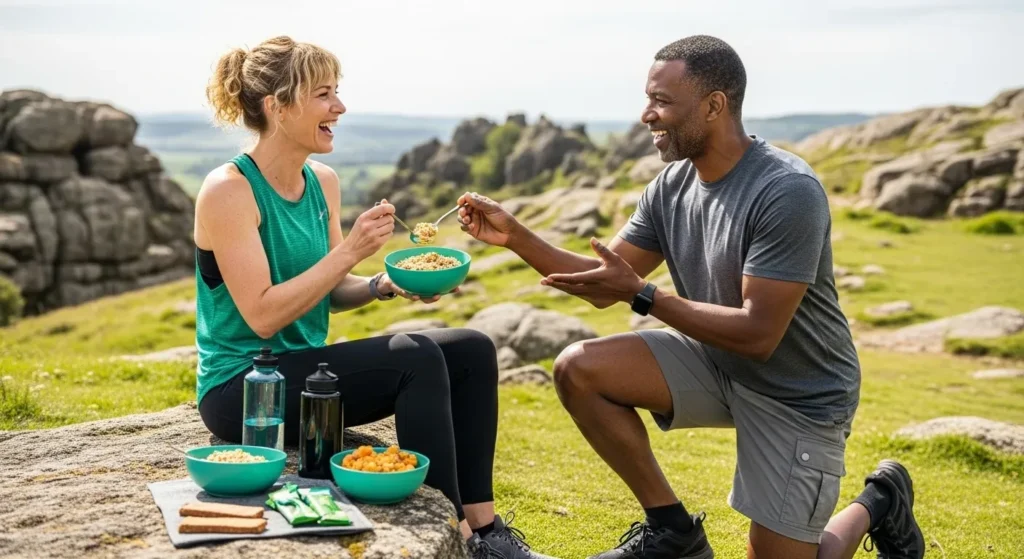 Les collations maintiennent l’apport constant. Pain complet, compote sans sucres ajoutés. Évitez légumes crucifères et légumineuses. Privilégiez carottes cuites et courgettes. L’objectif atteint 60-70% de vos calories en glucides. Votre glycogène musculaire grimpe progressivement.