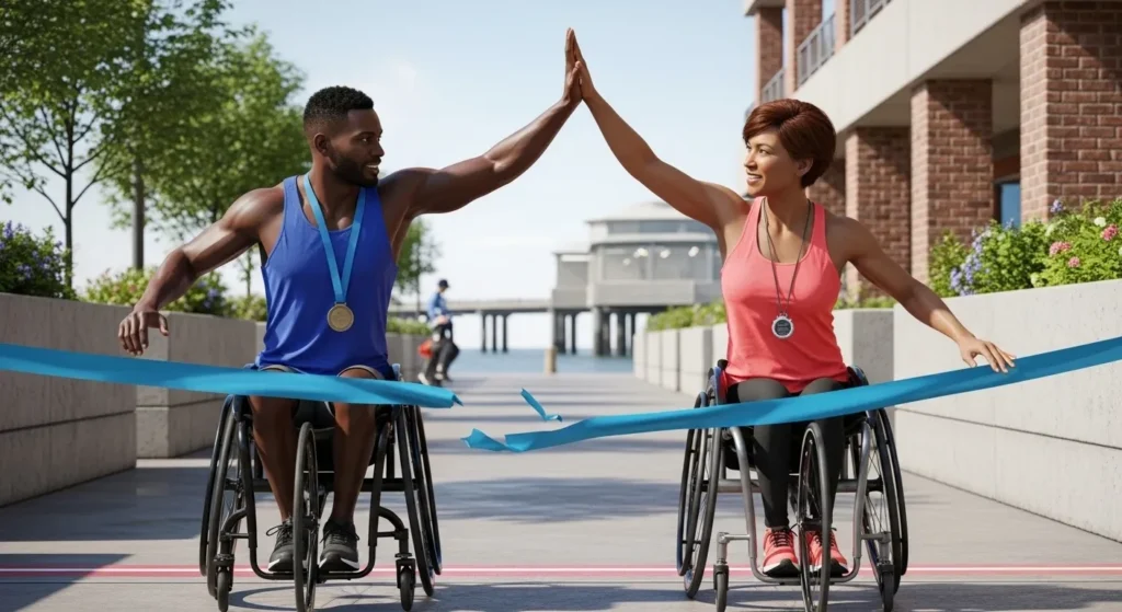 Les 36 finishers Adaptive de Chicago 2025 ont sué autant que les valides. Les ajustements préservent l’intensité : pousser un sled assis sollicite massivement les épaules et le tronc. Les kinésithérapeutes spécialisés en mouvement fonctionnel notent que l’effort cardiovasculaire reste maximal. La qualification via top 3 saisonnier garantit un niveau élevé.