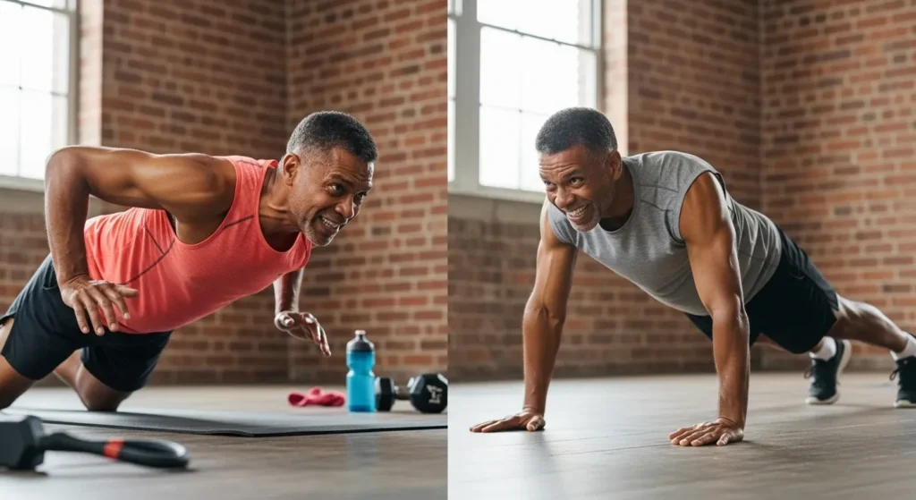 Les sit-ups travaillent abdominaux et cardio. Les mountain climbers simulent une course en planche, parfaits pour l’endurance. Le plank statique renforce vos stabilisateurs : maintenez 20-30 secondes au début.
