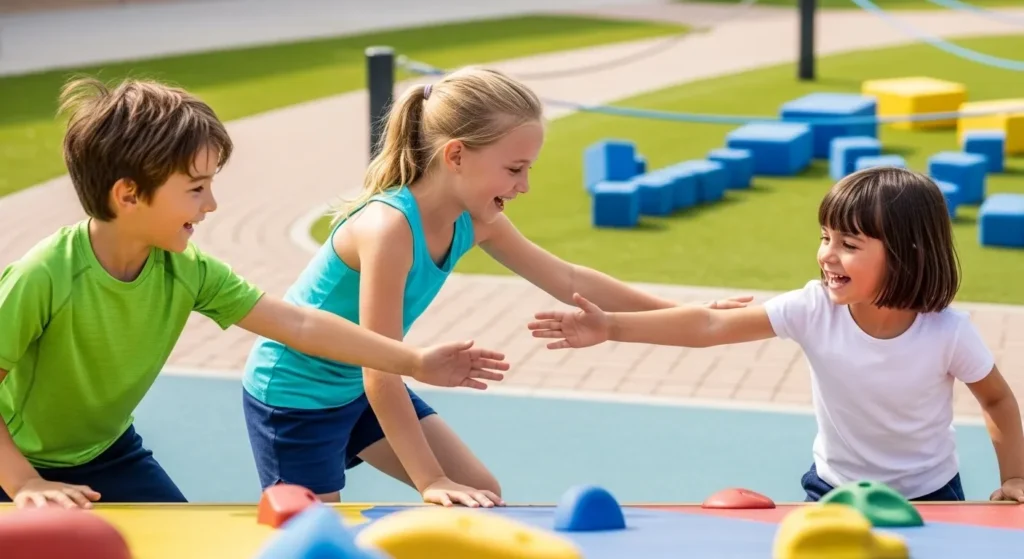 L’approche ludique renforce la confiance en soi. Les enfants apprennent à gérer le risque contrôlé dans un cadre sécurisé. Les défis en équipe développent l’esprit de groupe et la motivation intrinsèque.