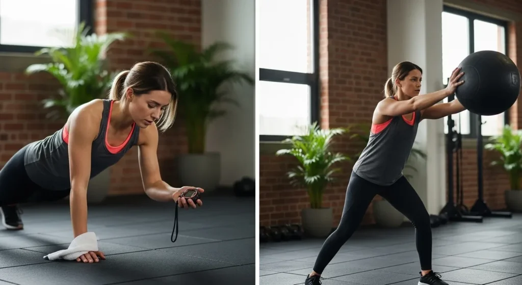 La musculation ciblée complète ce travail cardiovasculaire. Squats goblet avec 12-16 kg, deadlifts hex bar à 20-25 kg, push-ups adaptés sur genoux. Trois séries de 8 à 12 répétitions. Les kinésithérapeutes spécialisés en mouvement fonctionnel recommandent cette progression pour protéger vos articulations.
