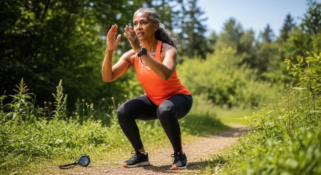 Les kinésithérapeutes spécialisés en mouvement fonctionnel notent que cette pause de 2 secondes en réception squat restaure partiellement l’ATP musculaire. Le lactate se dissipe mieux. Les fibres rapides des cuisses se rechargent. L’activation musculaire grimpe de 30% sur les quadriceps et de 20% sur les abdominaux. La respiration reste contrôlée. L’essoufflement excessif disparaît. Le mouvement suivant part avec une base énergétique solide.
