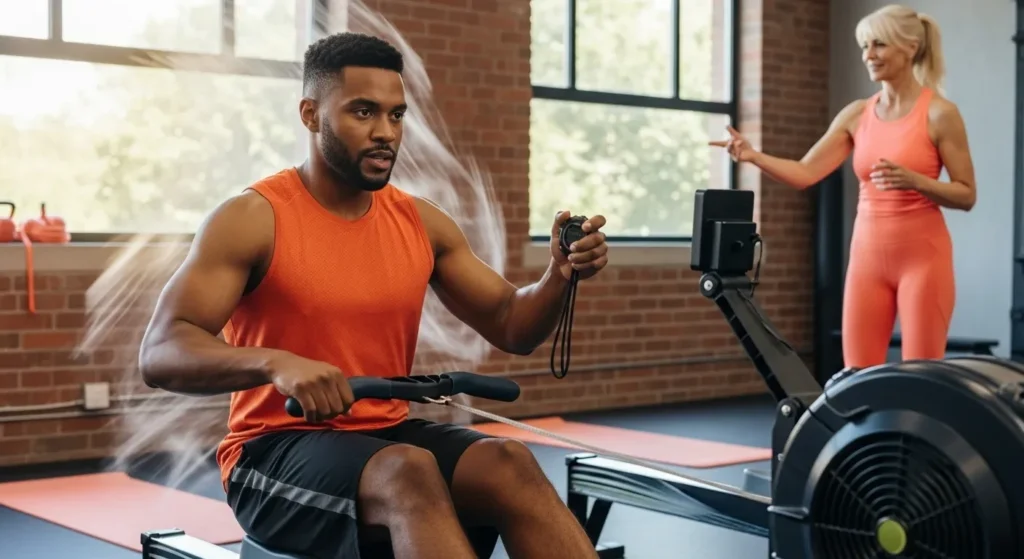 La flywheel tourne. Vos jambes poussent. Les 500 mètres défilent en 1 minute 50. Mais ce temps pourrait tomber à 1 minute 42 avec une seule correction : la séquence de propulsion. En 2025, les coachs sportifs certifiés avec diplômes BPJEPS confirment que 60% de la puissance vient des jambes, pourtant la plupart des rameurs sollicitent d’abord les bras. Cette erreur coûte 8 secondes sur 500 mètres. Les kinésithérapeutes spécialisés en mouvement fonctionnel notent qu’une technique optimisée réduit l’impact articulaire de 25% tout en augmentant la vitesse. Voici comment corriger votre rowing pour des gains immédiats.